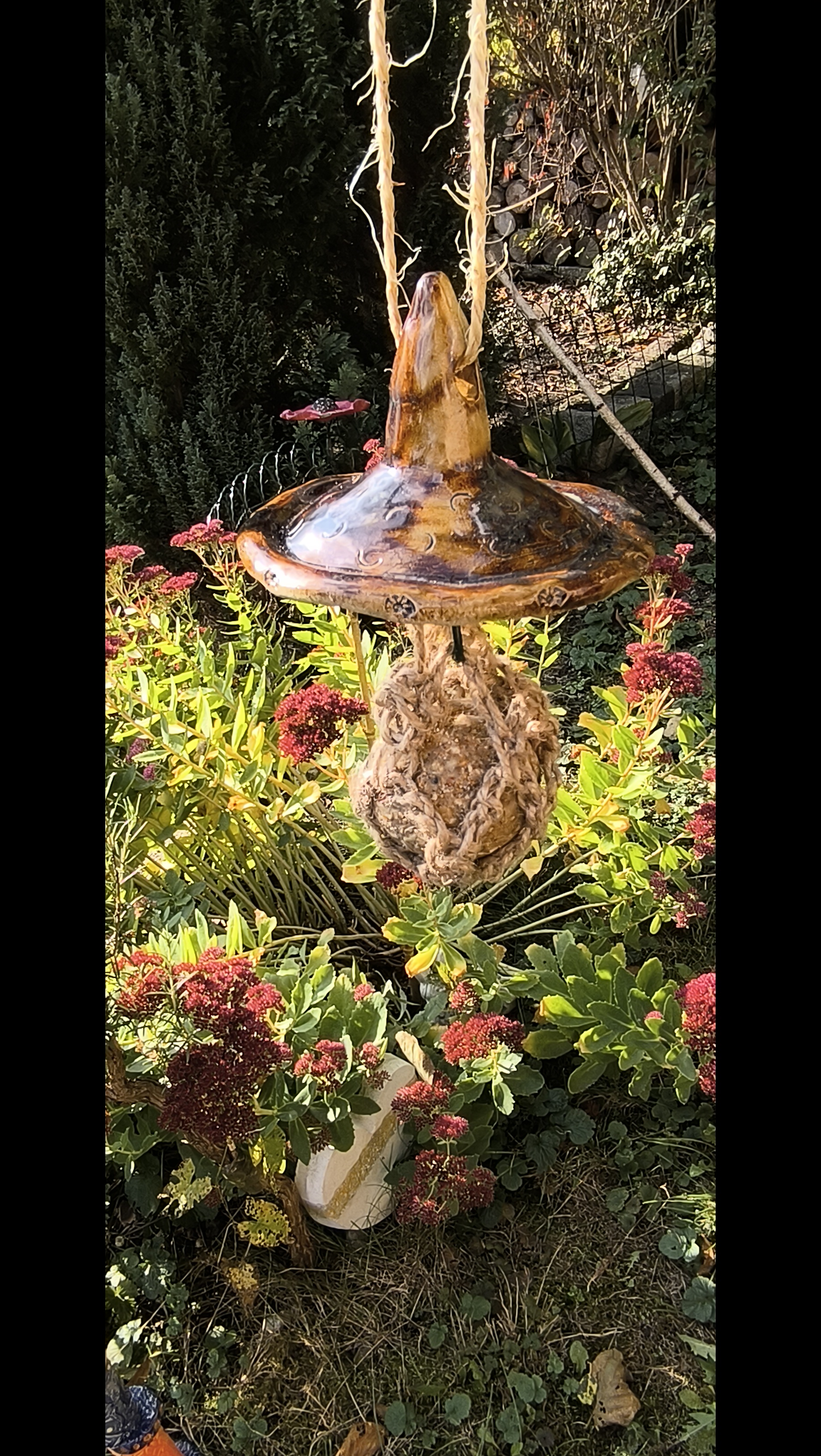 Meisenknödelhalter, Meisenknödeldach mit Sisalnetz, frostfest
